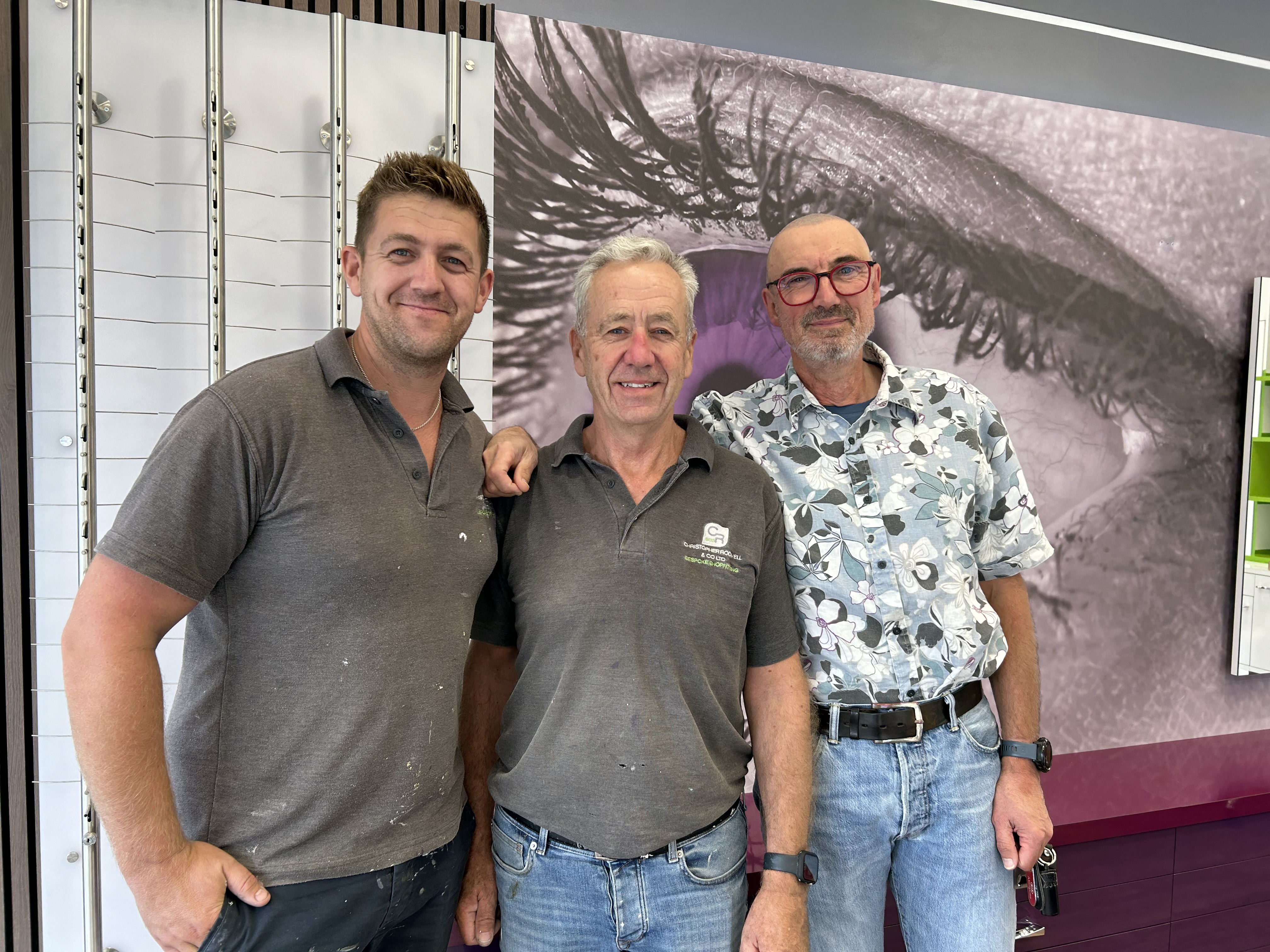 Chris, Ash, Daniel and apprentice Kyle have just finished our latest ‘refresh’, now with input from our own, home grown, qualified commercial designer Laura. On the theme ‘less is more’ we’ve adopted 3 big display screens, freshened the frame displays on both floors, updated the sunglass suite and incorporated a small homage to the history of Aarons in Ashington (circa 1908).